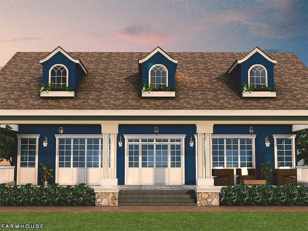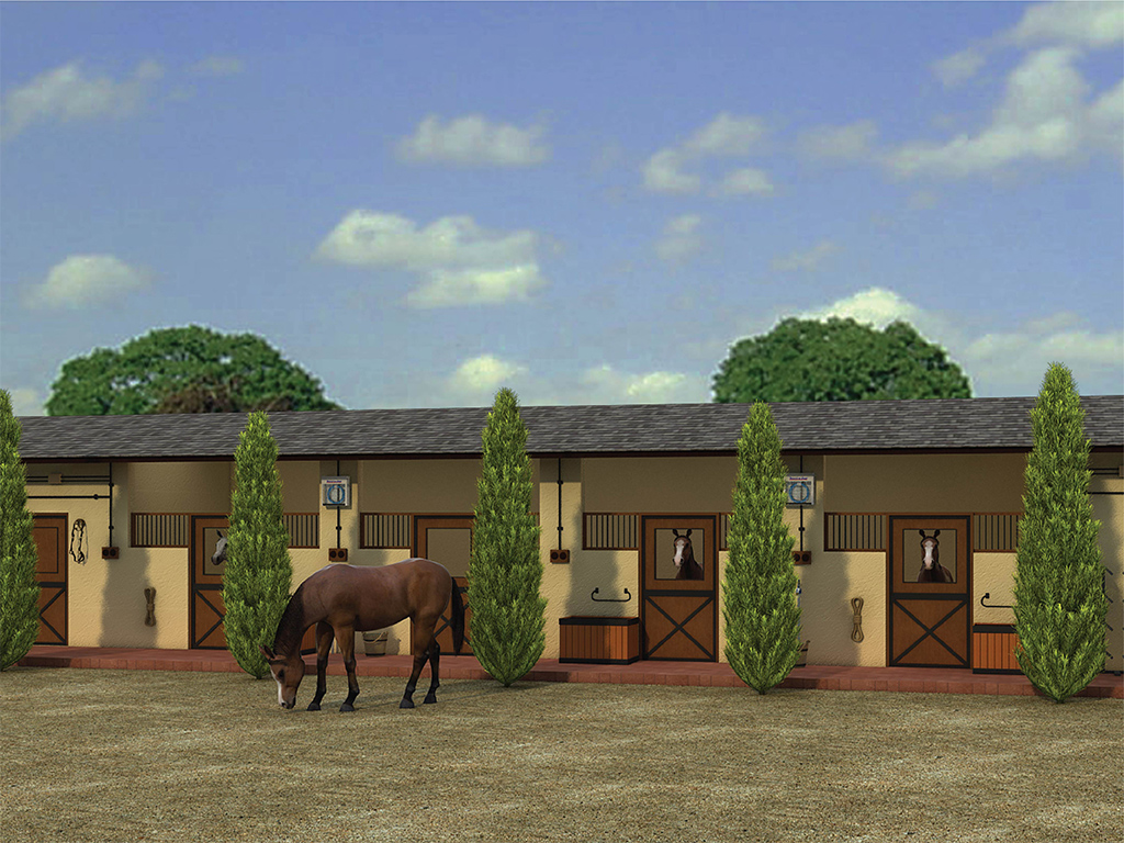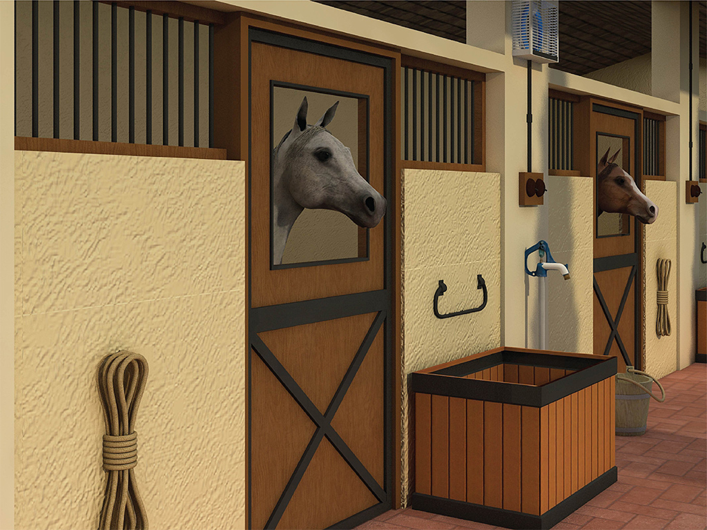 The client wanted a house that will depict their passion for horses and accommodate a stable and a paddock. For this particular project, the architects drew inspiration from the American countryside and ranches. A cobbled drop off plaza welcomes the guest into the structure. Multiple American structural elements line the entrance foyer. French door and windows with cornices make up the fenestrations of the construction. The use of elements is kept to a bare minimum to avoid making the structure decorative. The landscape surrounding the house features separate vegetable gardens, lawn mounds and open spaces and a wishing well completing the American countryside experience.
