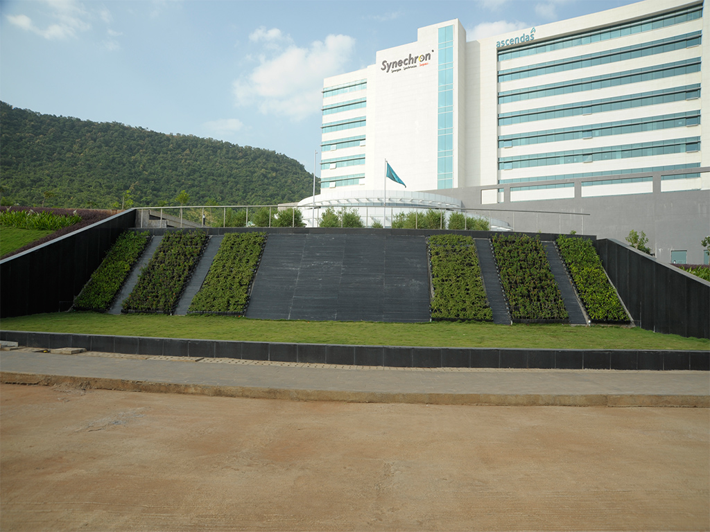 For a client like IBP, the landscape design posed some challenges. The client hoped for a design that would complement its modern architecture. The design also had to incorporate the natural slope present at the onsite. In a subtle departure from the traditional landscape, this design is not to be explored at the usual eye level, but to be experienced as one ascends the steps. Steps flank the natural slope with the plantation. The red frames set the strong lines reflecting the corporate utility of the structure. The circular landscaped terrace that envelops the building is a prerequisite orientation before the actual entrance. This landscape is a flawless extension of the interior of the building. The wide flat area close to the structure is the perfect spillover space for the indoor activities. Seatings under trees and plazas are placed at an easy access from the two developed phases. The landscaped podium adds to an aesthetic sight from the building’s windows giving it a much-needed breather in terms of bringing the nature into the structure visually.