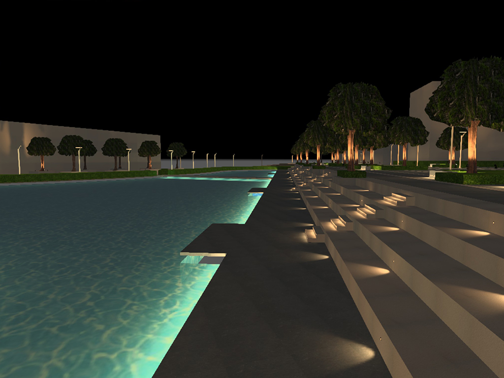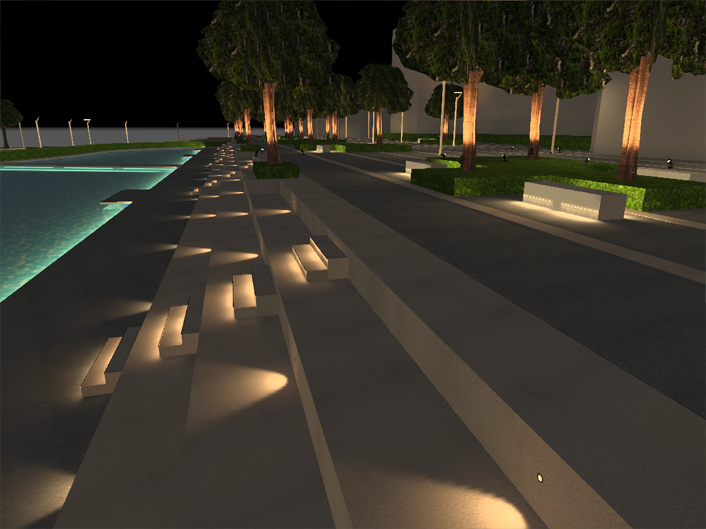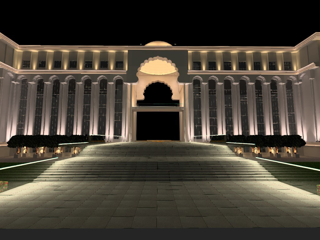 The design for this educational institute had to such that it’ll bring out the architectural features of the structure. The façade lighting is used in such a way that it accentuates the architectural features like the arches, dome, entrance, bridge and the atrium. The Majestic Avenue and tree plaza is created by a combination of light pillar, a soothing and calming water front & up lighting tree foliage.A floating bridge effect is created by LED strip / dot less light to create an elevated bridge effect