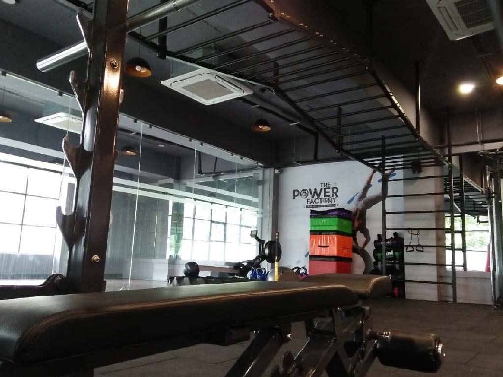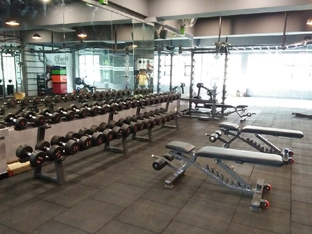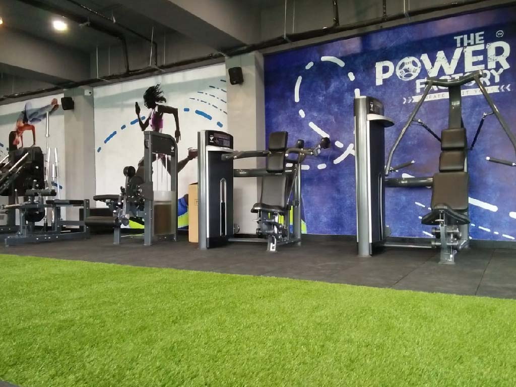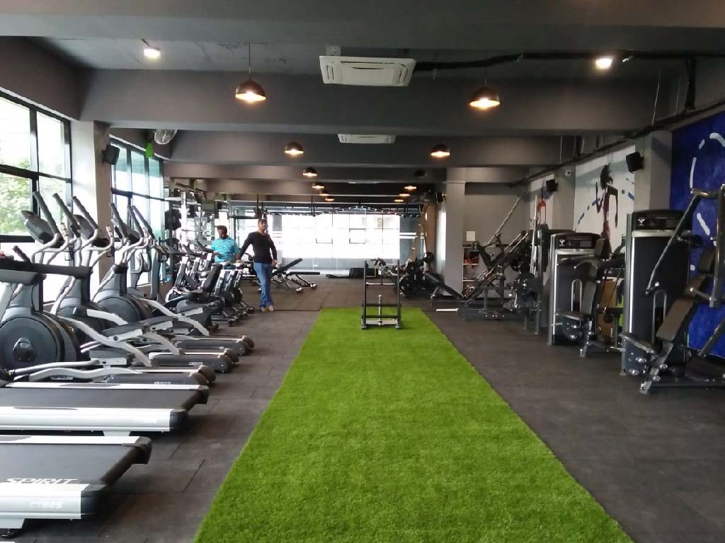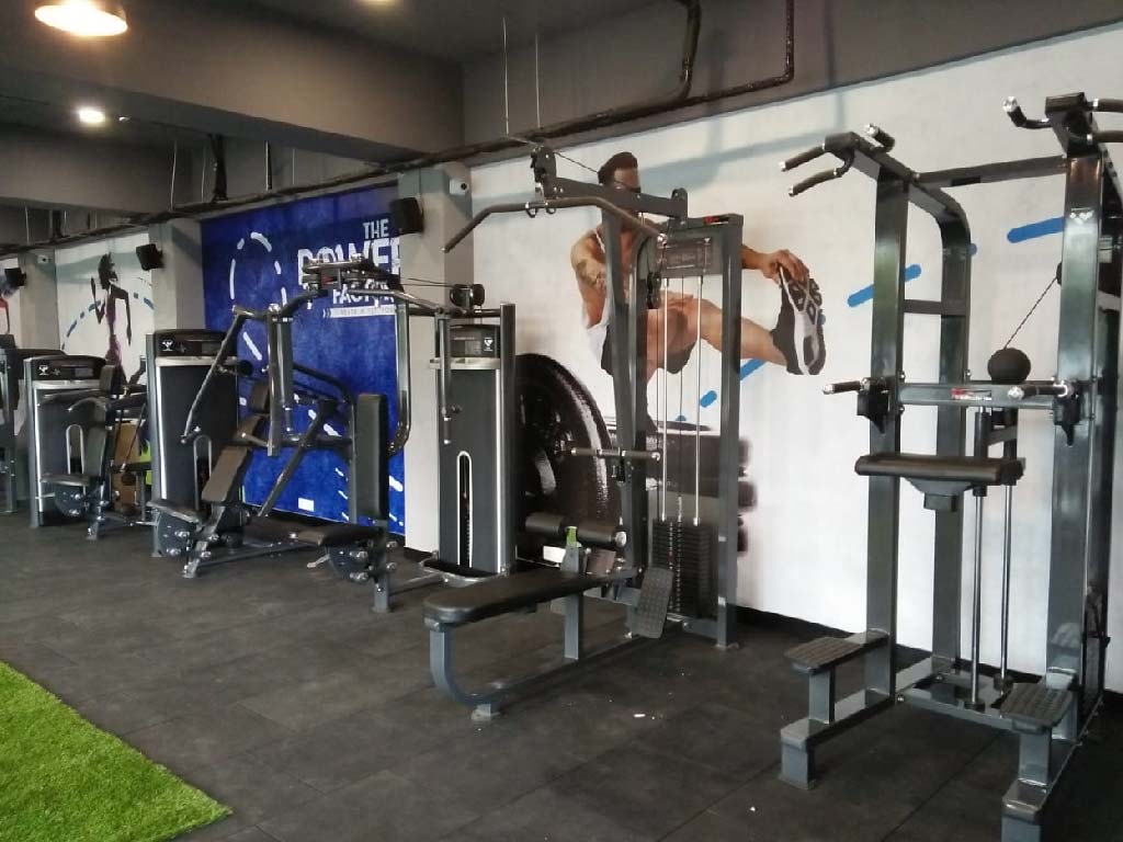 The client wished for a workout space that had a young and fresh atmosphere. The idea was to encourage a healthy lifestyle. The aim while designing for this site was to utilize the natural light that the site had due to its road facing side. A complete glazing on this side allows the natural light to pour in letting the space being well lit throughout the day. The neutral colour palette of greys and whites brings out the colours in the graphics on the walls. The ceiling is left exposed to give the site an airy feel. Hanging lights are used to add interest to the entire space.